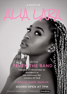 Emerging Artist - ALIA LARA is back again at NAMBUCCA with the help of 7EVEN The Band and support: Jacklyn.